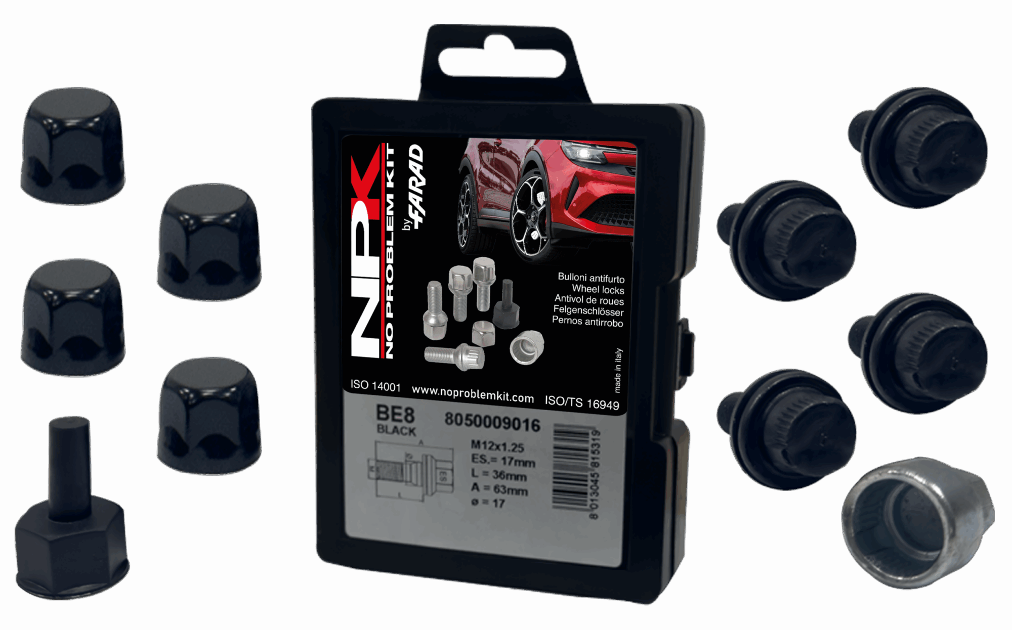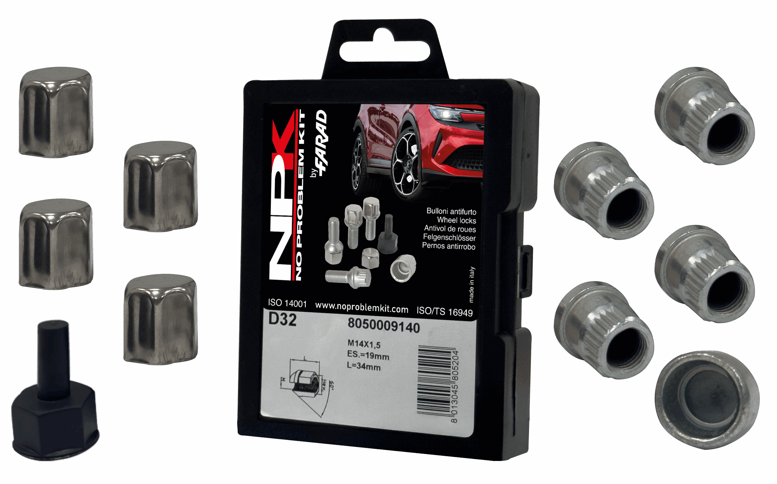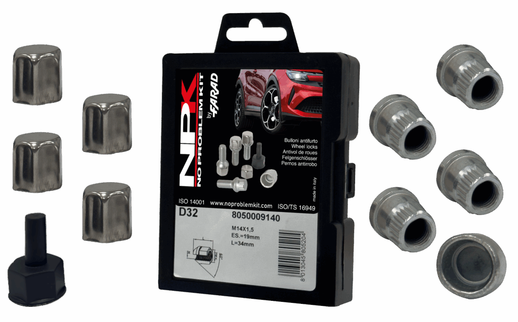 NPK KIT Bulloneria Antifurto by Farad è progettato per proteggere le ruote della tua auto dai tentativi di furto.