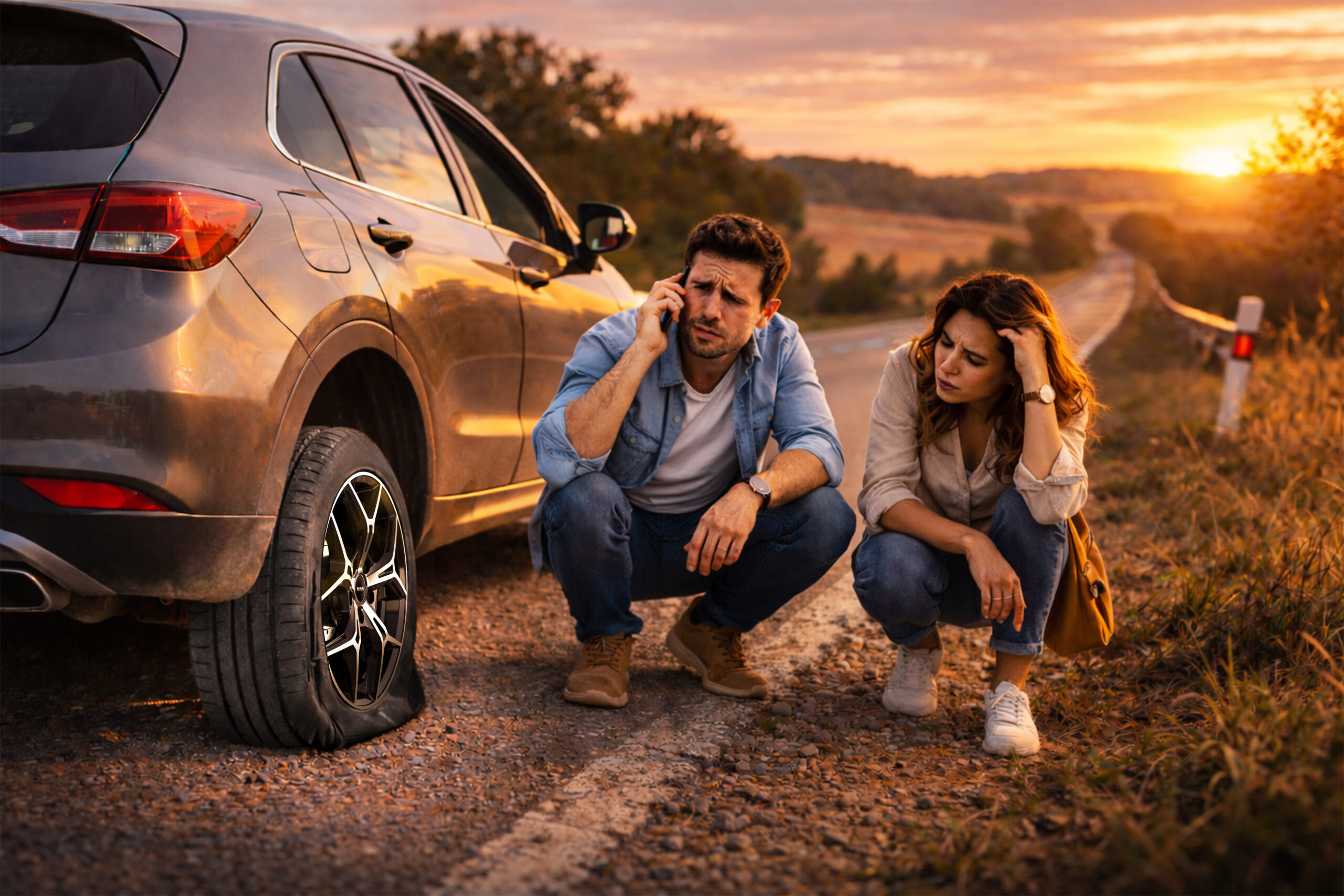 Per montare correttamente il Kit Ruota di Scorta bisogna accostare in sicurezza, attivando le frecce d’emergenza, in un’area sicura che non arrechi intralcio al traffico.